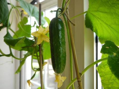 Чтобы выращивать на подоконнике или на балконе огурцы, стоит присмотреться к самоопыляемым сортам, которые помечаются значком F1. Если для растения созданы все условия, оно может дать 3-4 десятка плодов. Здесь придется немного повозиться с рассадой, зато после пересадки в ящики надо будет только поливать и подрезать усики.