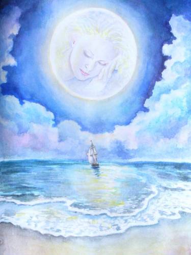Автор Фея, написано на основе ТСС Давным давно, когда Боги Олимпа ещё жили в сердцах людей, а небо сливалось с землей в порыве гармонии, жили титаны. Благодаря их сиянию появилась дочь, имя которой было Селена. Вестницей Богов она жила на земле, вершила дела и освещала мир. Ночью её сияние было особенно сильным, и Боги знали и видели, что творится в мире при сиянии Селены. Так она училась быть ближе к людям. Однажды ночью, прогуливаясь и освещая море, Селена заметила прекрасного юношу, шедшего по берегу. Влюбилась без ума Селена в юношу, и ещё ярче каждую ночь стала светить, нежно лаская его пламенем лучей своих. Всё, что творилось на земле, было подвластно титанам. Прогневались они за любовь к человеку. "Придет время, и Селена будет царствовать на Олимпе, негоже отдавать свою любовь простому смертному", - говорили они. И тогда титаны нагнали мор на город, а рыбу угнали далеко от берегов. Тяжелые времена настали для города, но ночное сияние завораживало и дарило надежду поселенцам земли той. Каждую ночь Селена освещала город и море, и вскоре рыбаки стали уходить всё дальше и дальше, зная, что Сияние Селены, как маяк, приведет обратно, и ночью им не заблудиться в морской бездне. Старец Океан в то время ещё не был Богом океана, и та большая река, которая омывала всю землю вокруг, принадлежала титанам.